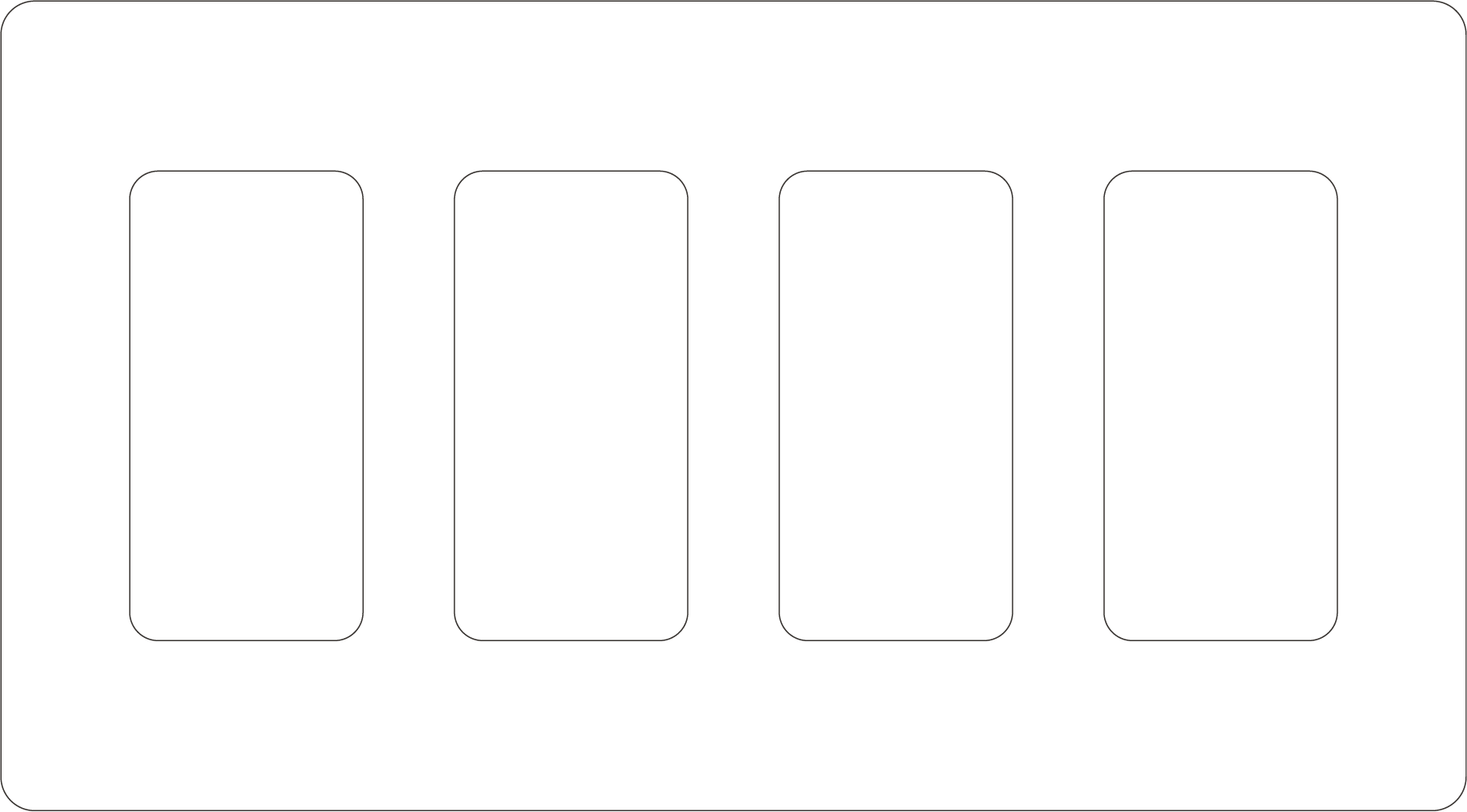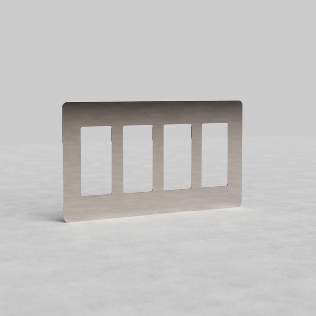This Kew 4 gang outlet plate works with any four of our polished nickel rocker switches or our outlet modules.