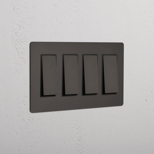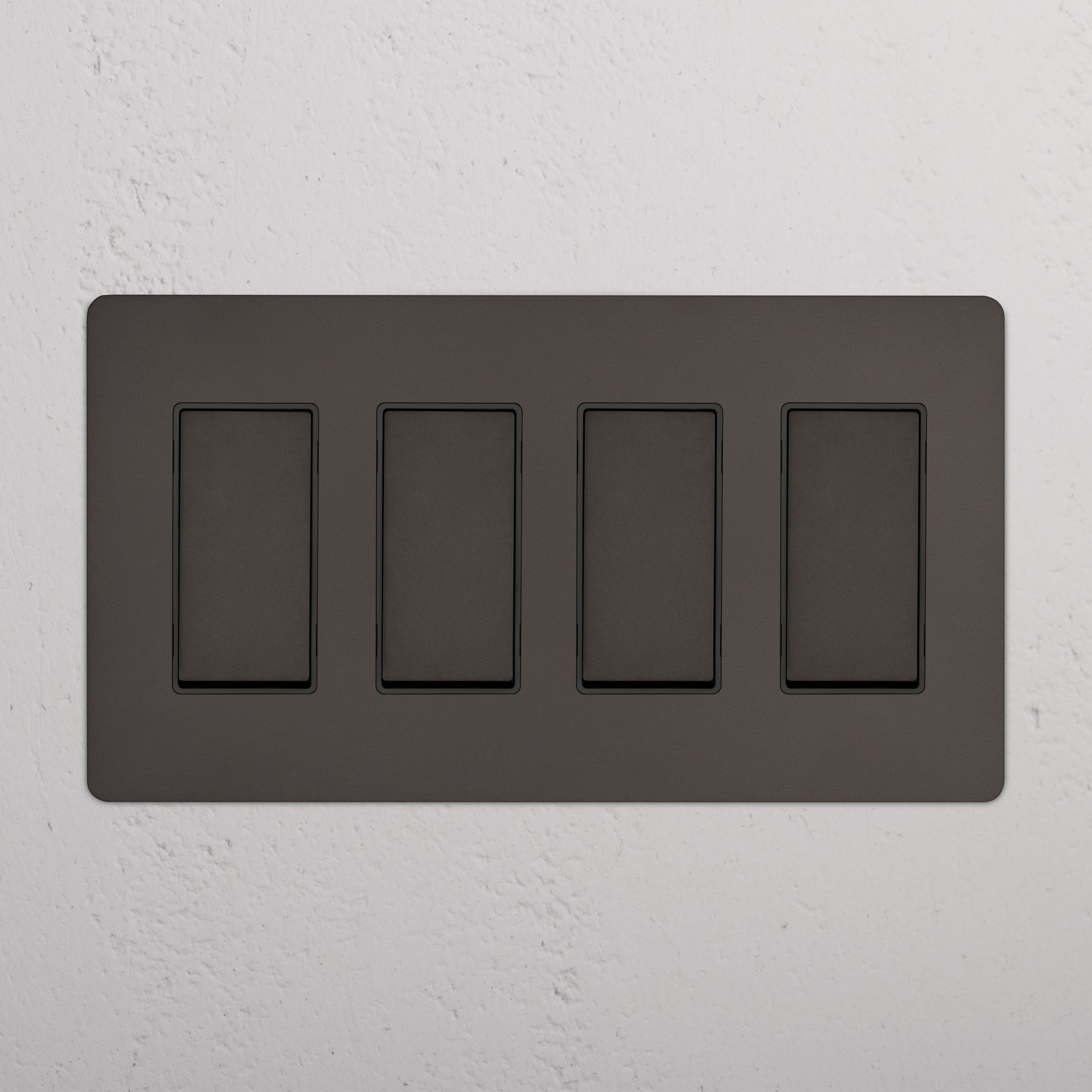 Our 4 gang three-way rocker switch is crafted to be as sleek and timeless as possible in any interior setting.