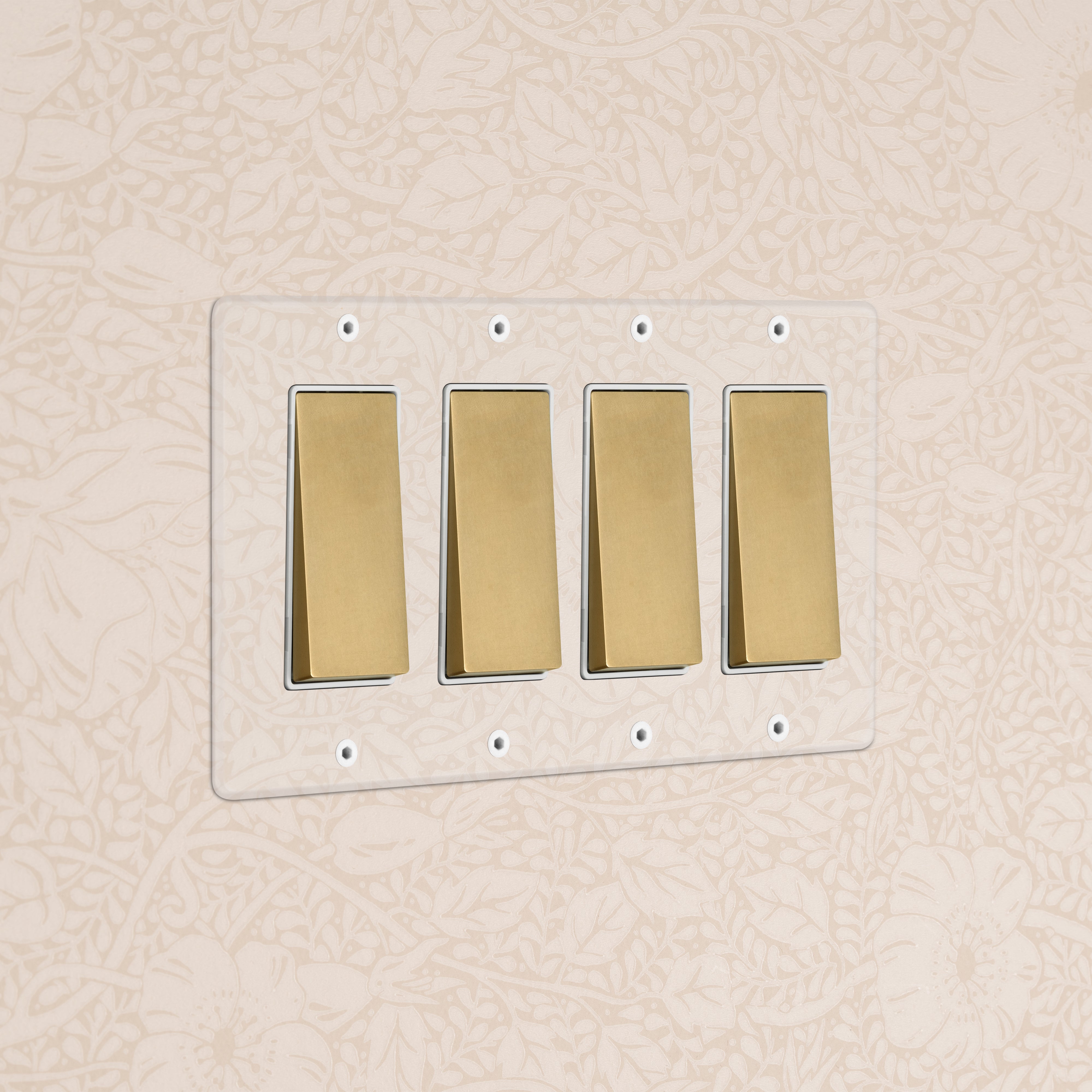 The clear switches and outlets in our Kew collection come with backing paper that you can either paint or use as a wallpaper template. The transparent front plate is then secured over the backing paper to conceal the electrics. All our electrical products should be installed by a qualified electrician.