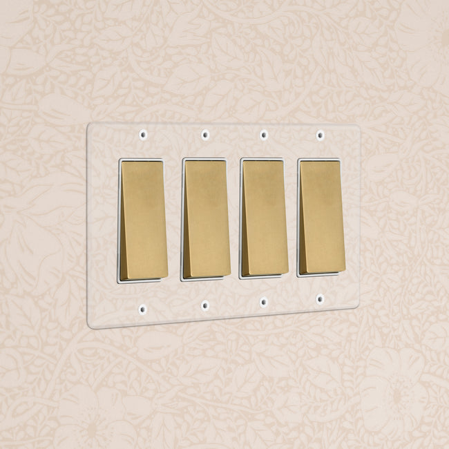 Our 4 gang three-way rocker switch is crafted to be as sleek and timeless as possible in any interior setting.