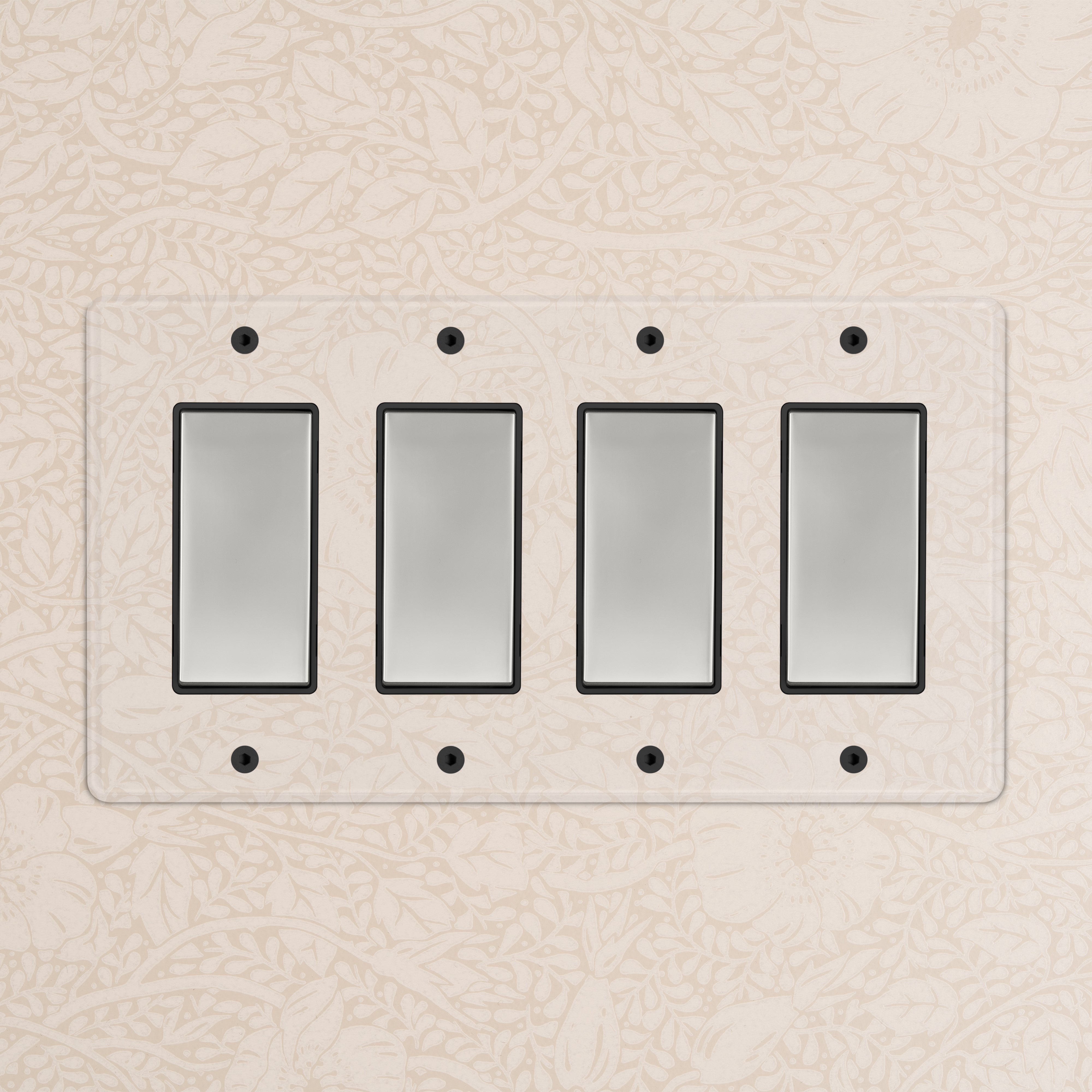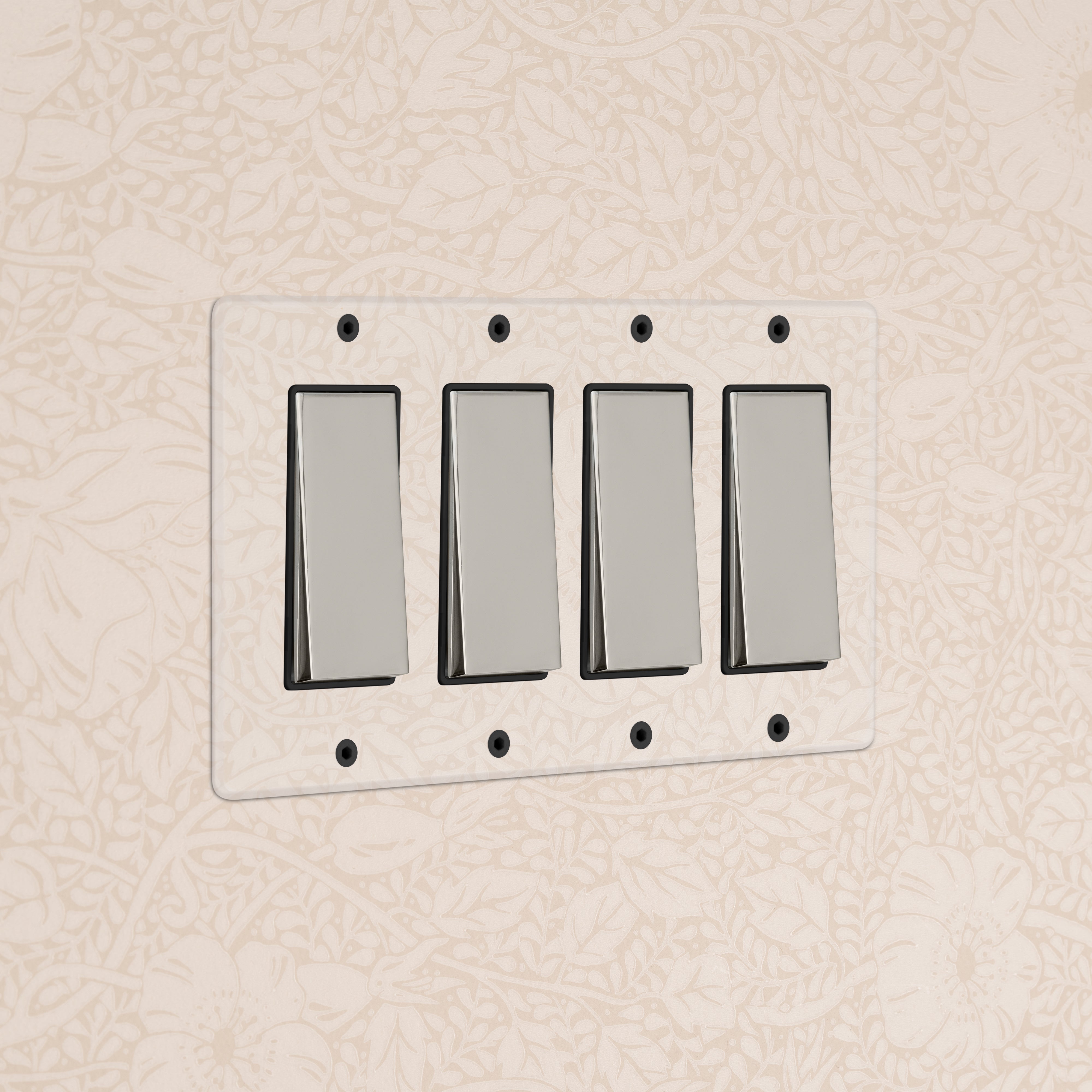 Our 4 gang three-way rocker switch is crafted to be as sleek and timeless as possible in any interior setting.