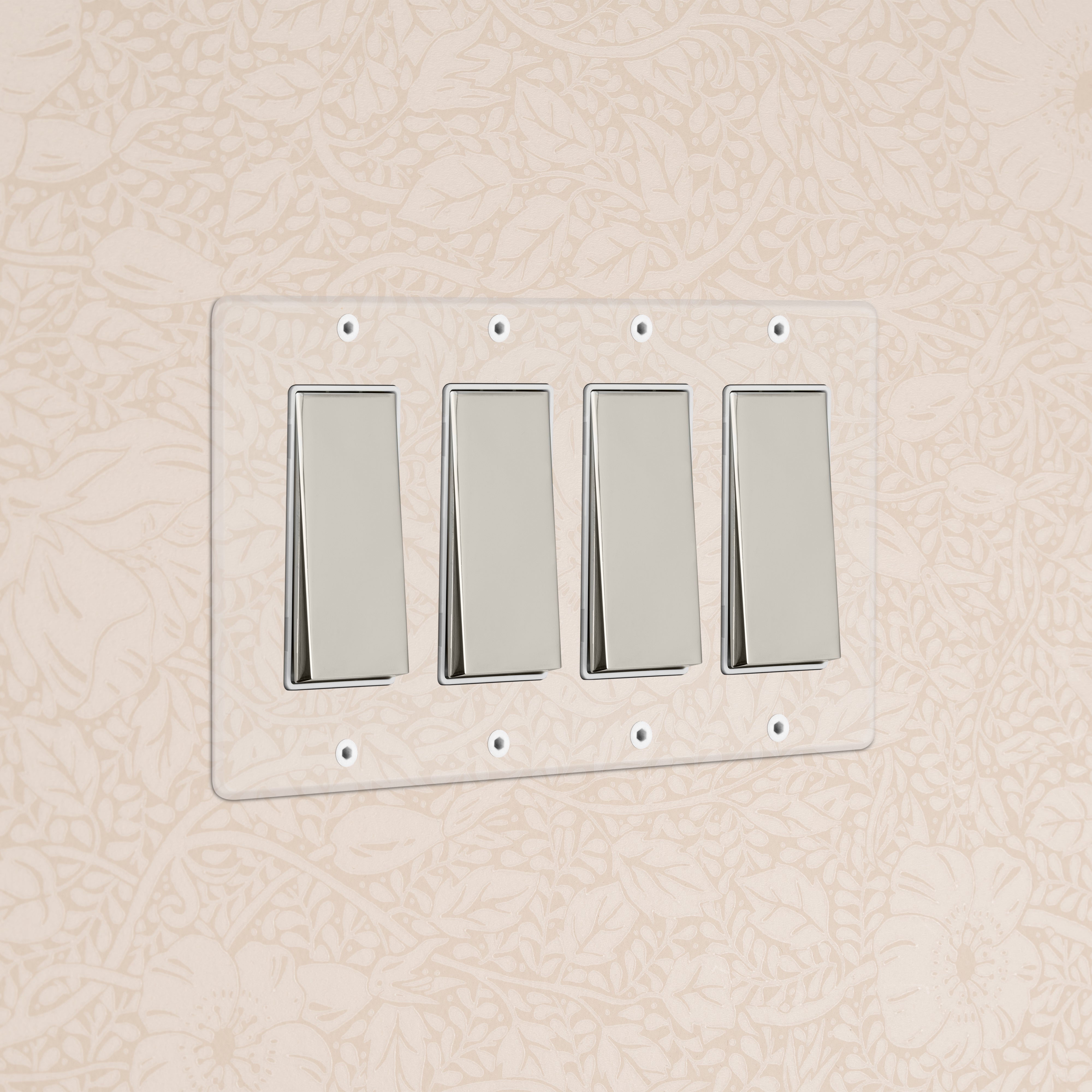 Our 4 gang three-way rocker switch is crafted to be as sleek and timeless as possible in any interior setting.