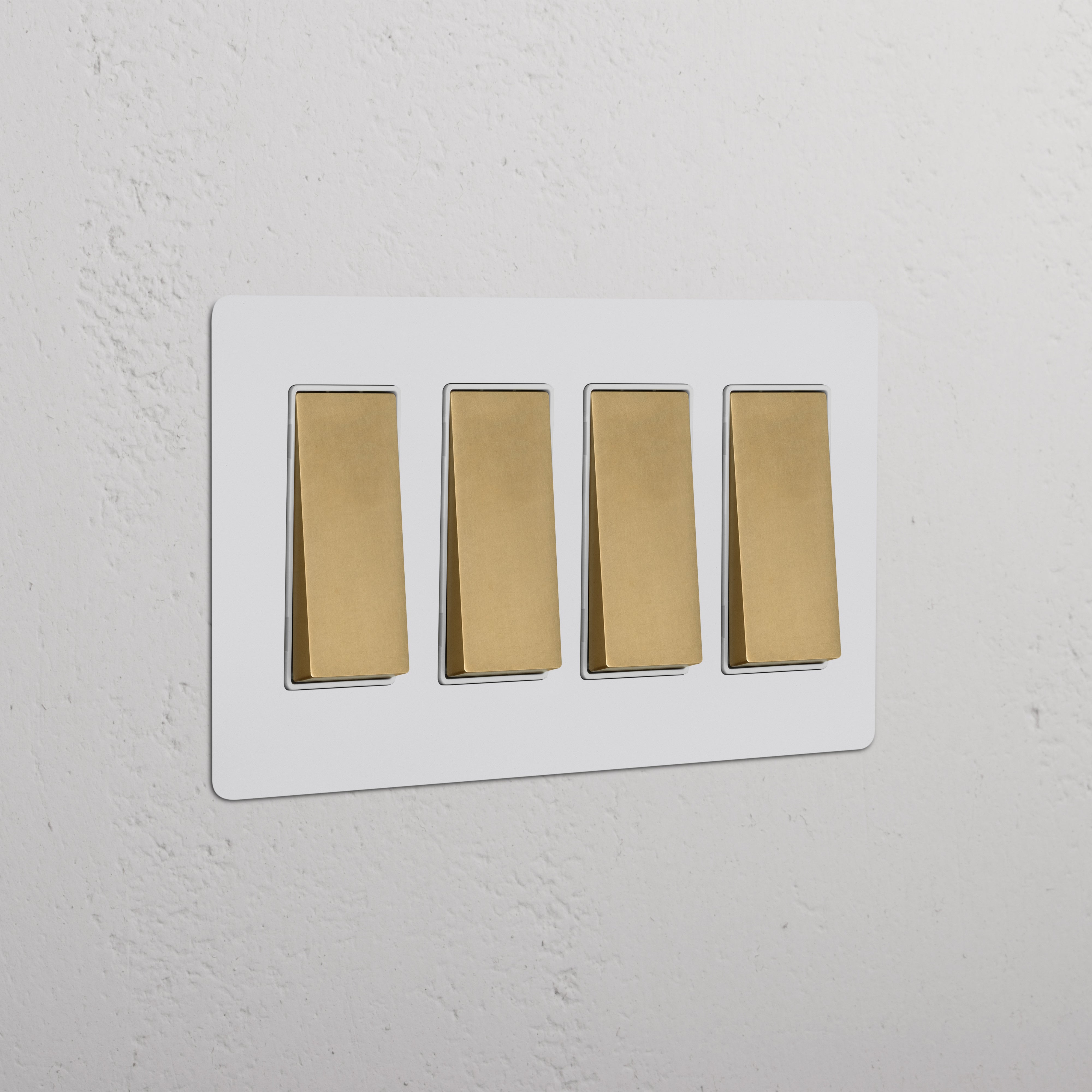 Our 4 gang three-way rocker switch is crafted to be as sleek and timeless as possible in any interior setting.