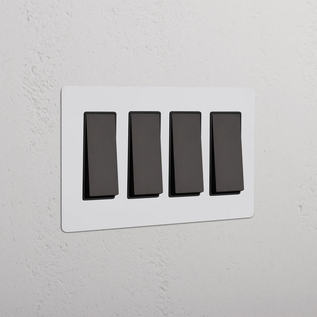 Our 4 gang three-way rocker switch is crafted to be as sleek and timeless as possible in any interior setting.