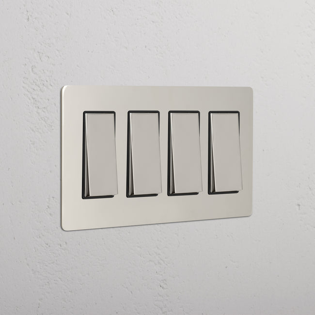 Our 4 gang three-way rocker switch is crafted to be as sleek and timeless as possible in any interior setting.