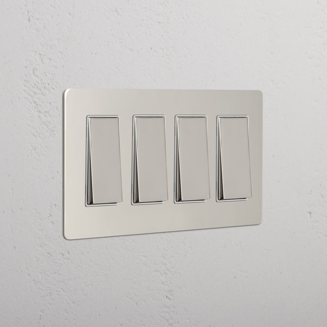 Our 4 gang three-way rocker switch is crafted to be as sleek and timeless as possible in any interior setting.