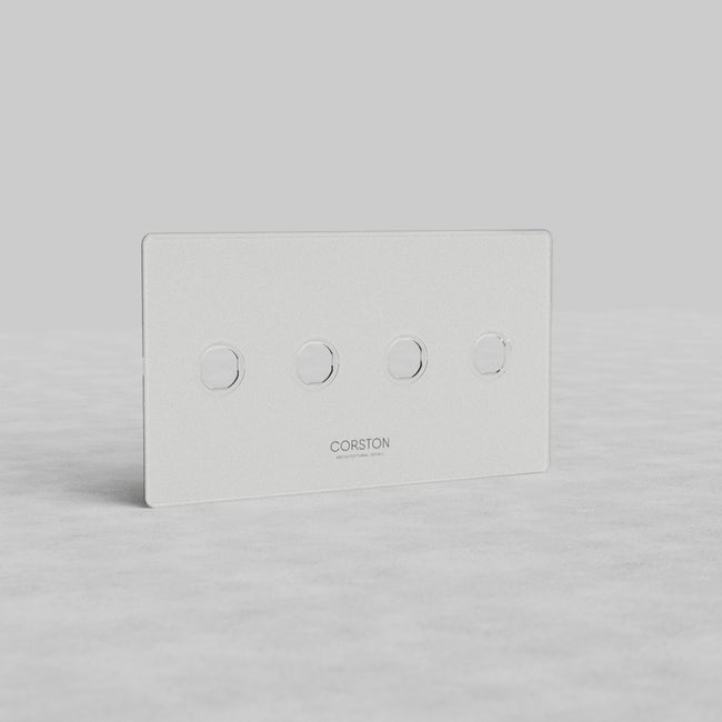 This Kew clear 4 gang switch plate works with any four of our toggle or rotary dimmer switches.