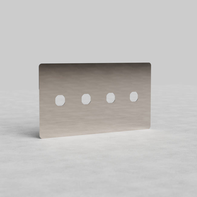 This Kew 4 gang switch plate works with any four of our polished nickel toggle switches or rotary dimmer switches.