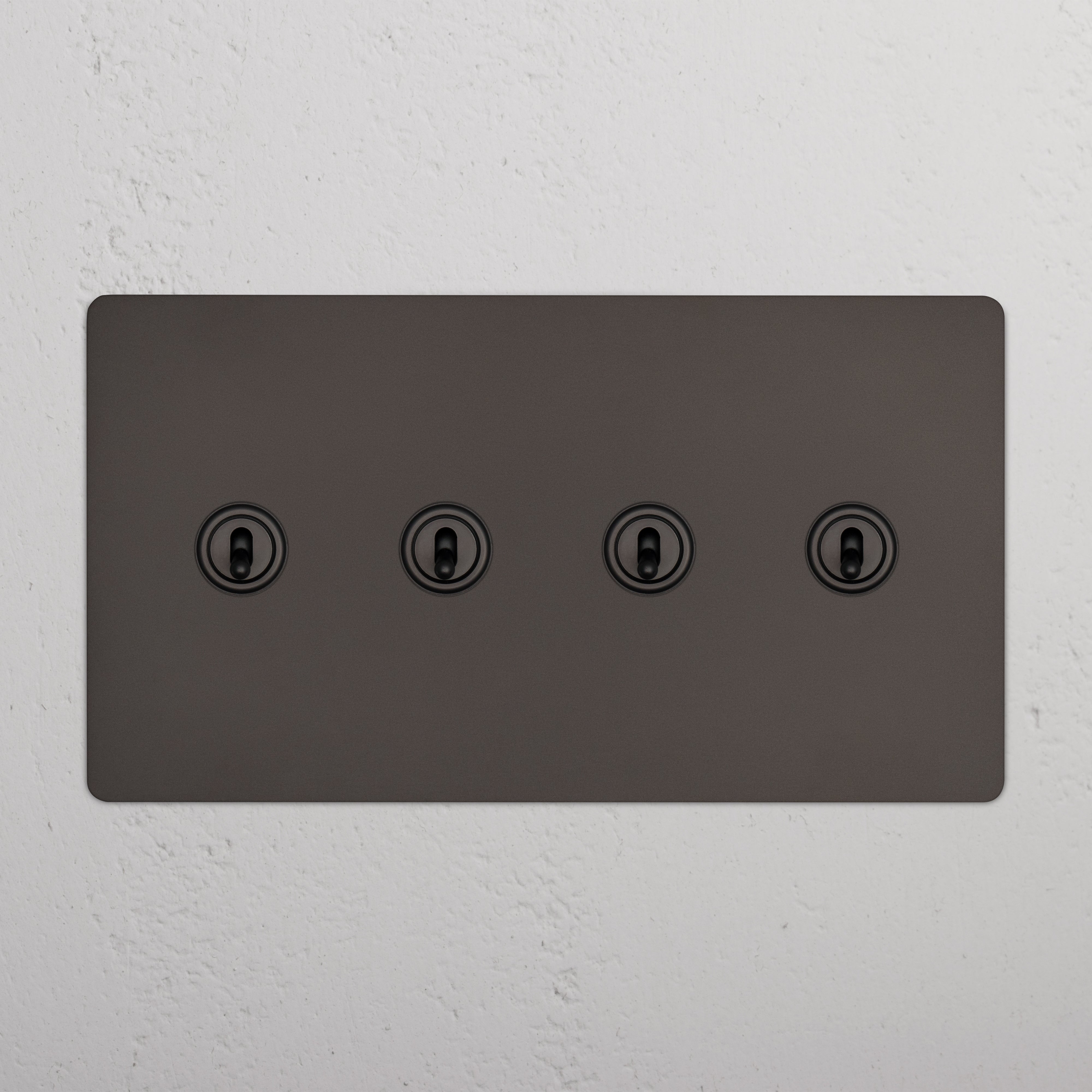 Our 4 gang three-way toggle switch is a modern take on the classic dolly design. We’ve crafted it to be as sleek and timeless as possible in any interior setting.