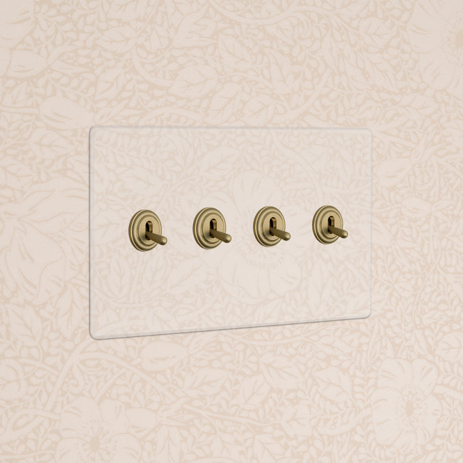 Our 4 gang three-way toggle switch is a modern take on the classic dolly design. We’ve crafted it to be as sleek and timeless as possible in any interior setting.
