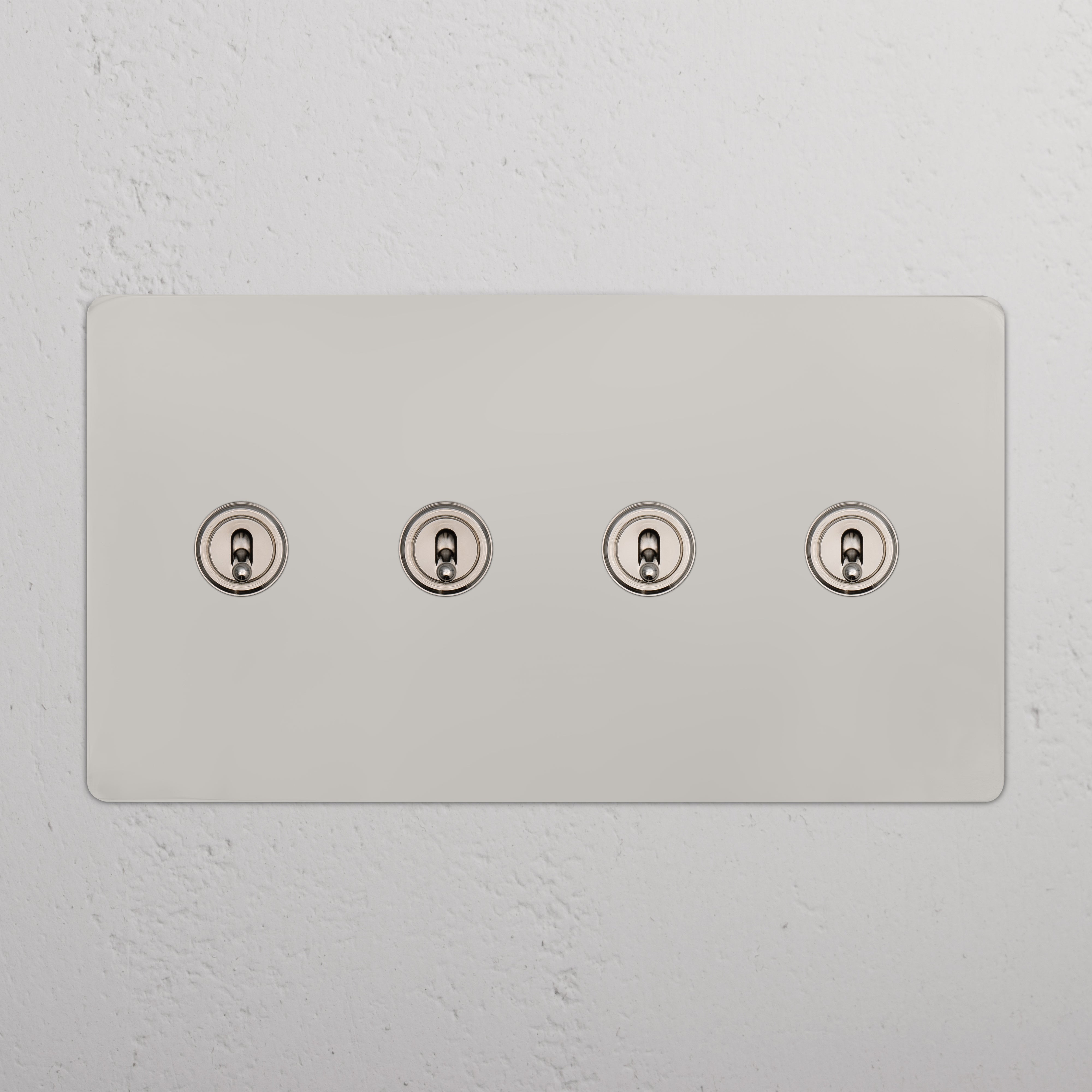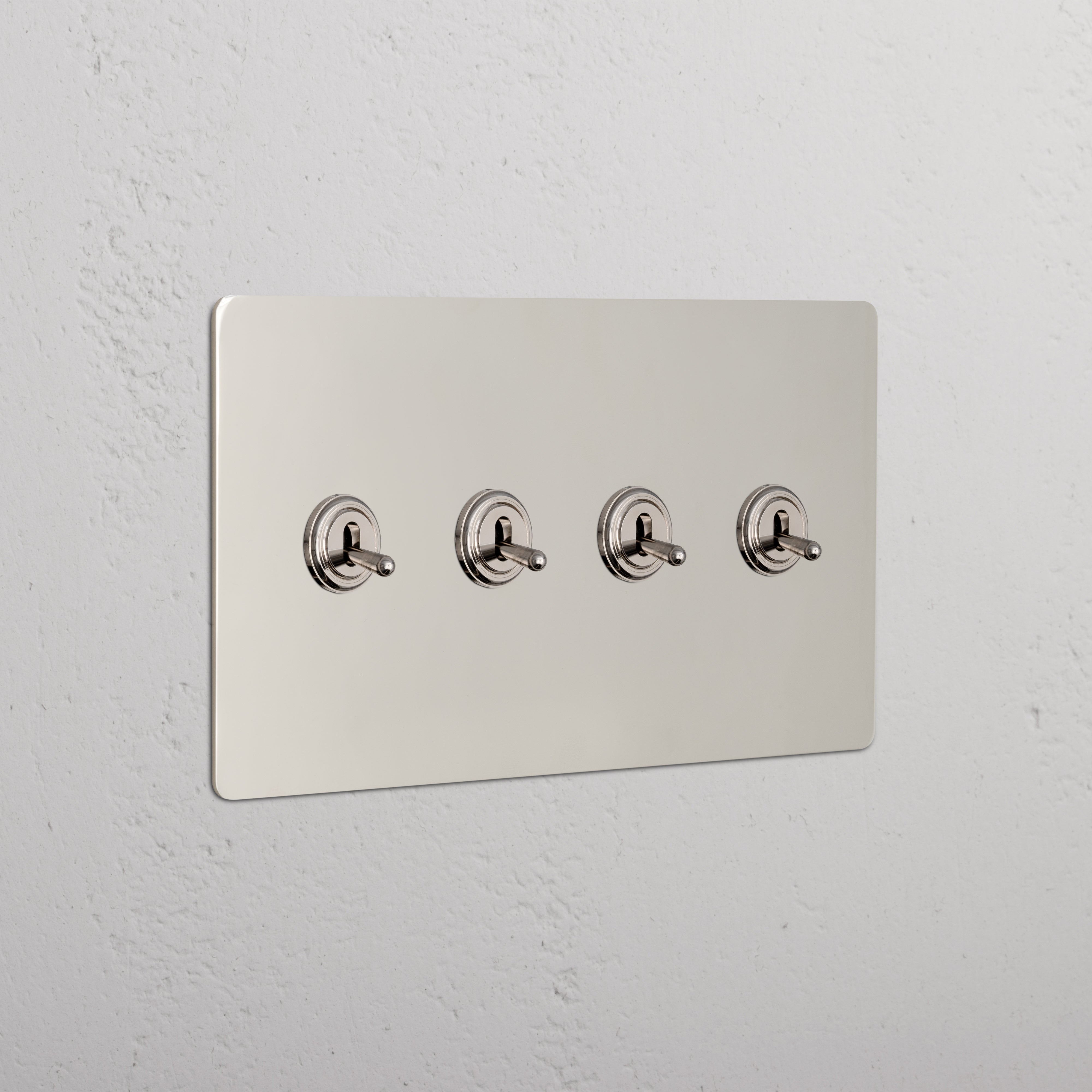 Our 4 gang three-way toggle switch is a modern take on the classic dolly design. We’ve crafted it to be as sleek and timeless as possible in any interior setting.