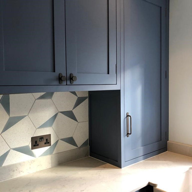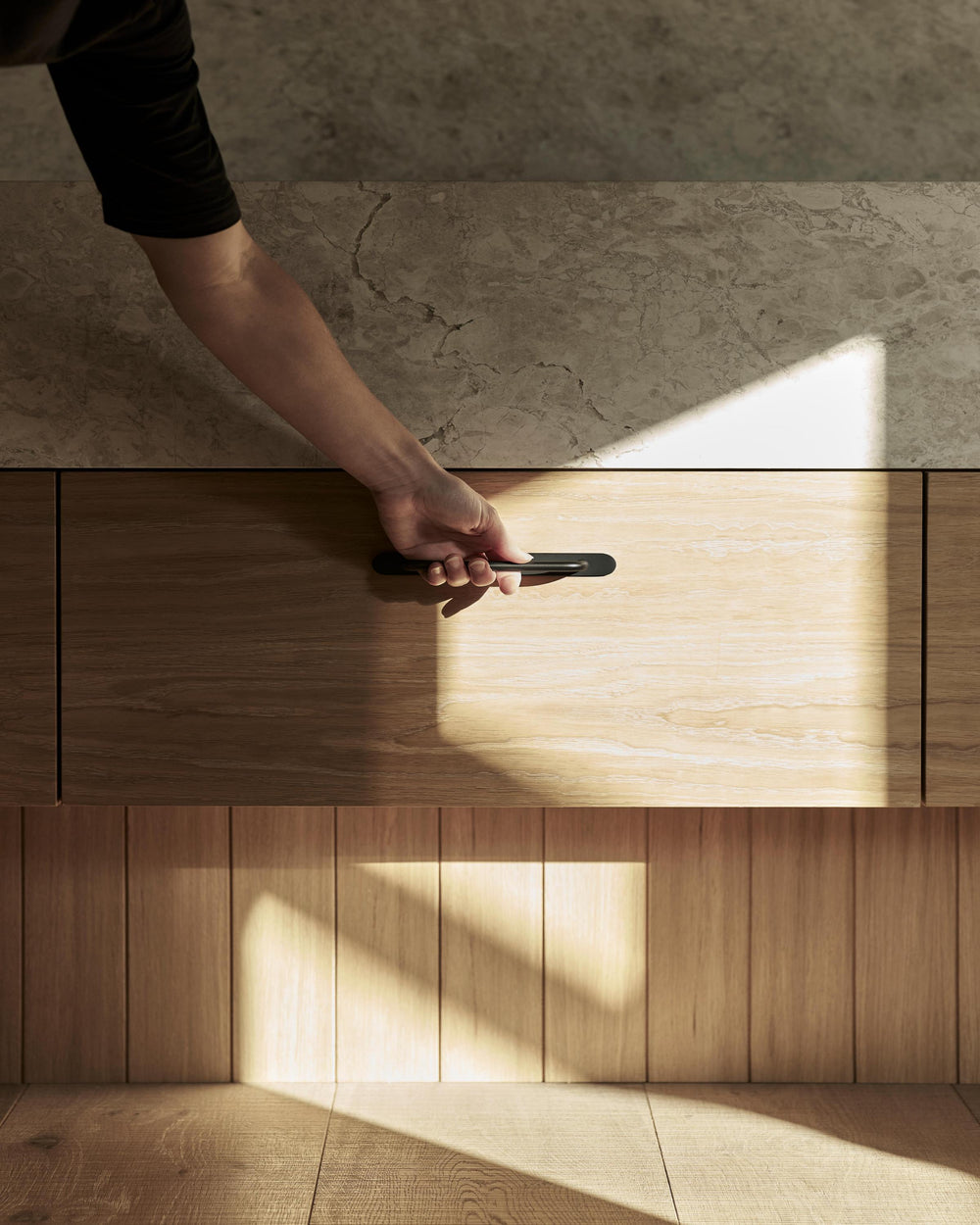 A sleek, simple pull handle with a discreet backplate that’ll protect drawers and doors from marks and scratches.