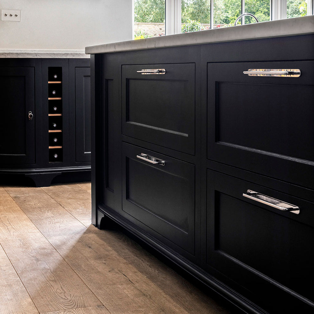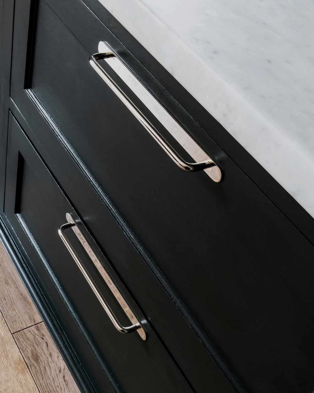 A sleek, simple pull handle with a discreet backplate that’ll protect drawers and doors from marks and scratches.