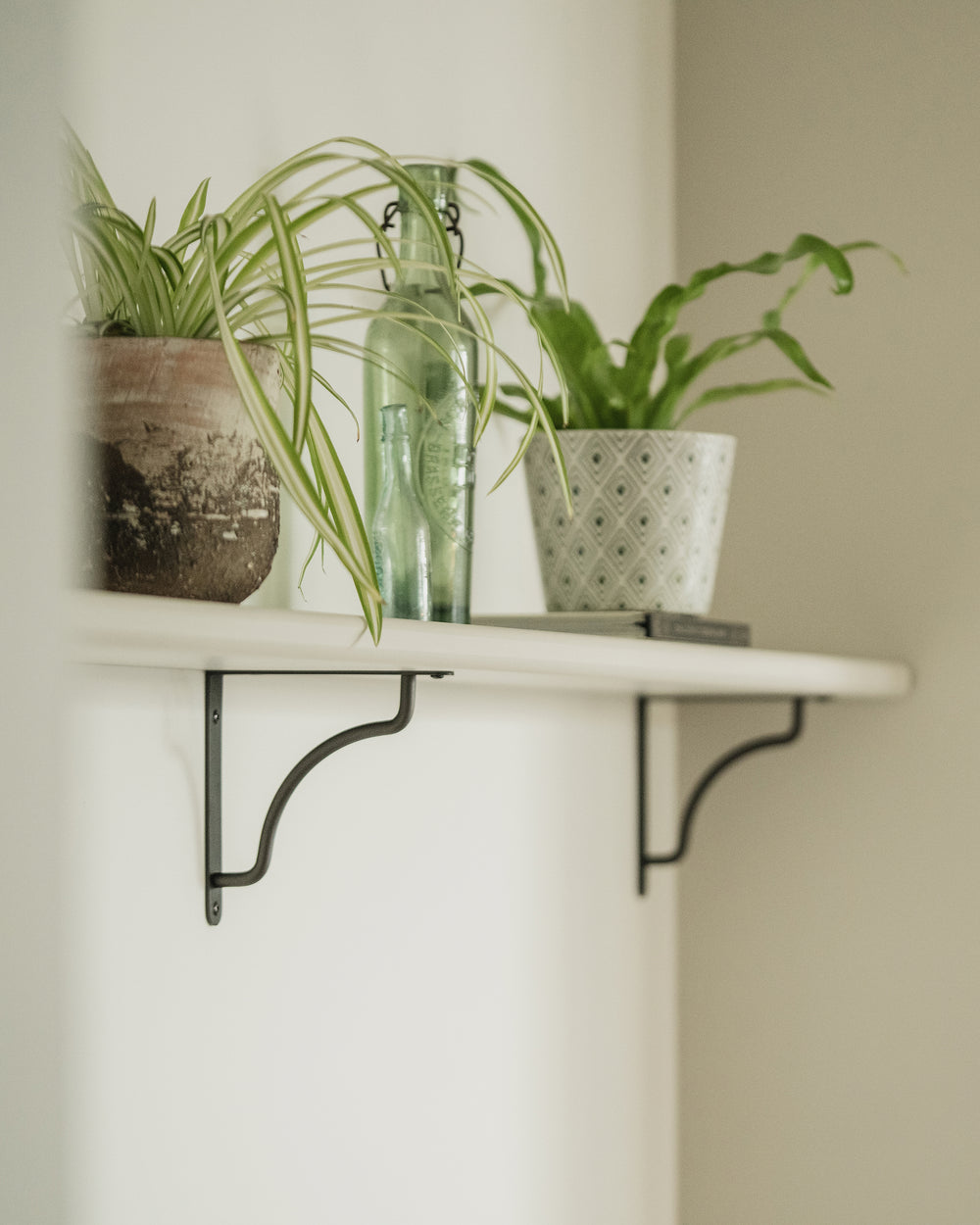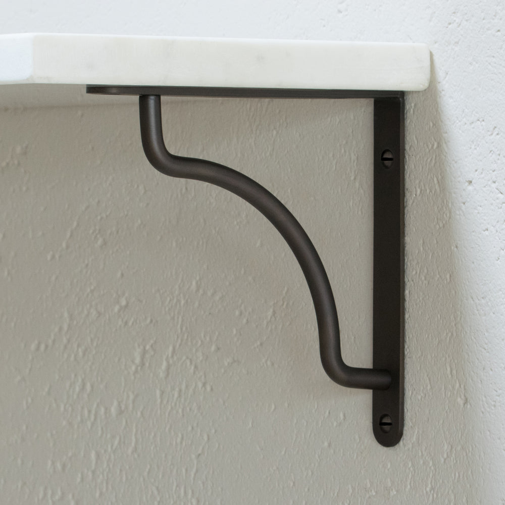 Our gently curved Kilburn shelf bracket is made from sturdy solid brass and will hold up to 85lbs.