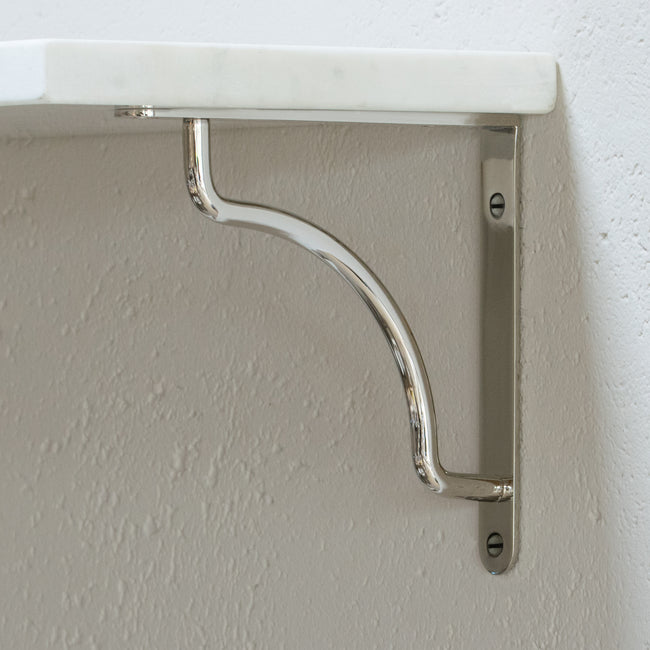 Our gently curved Kilburn shelf bracket is made from sturdy solid brass and will hold up to 85lbs.