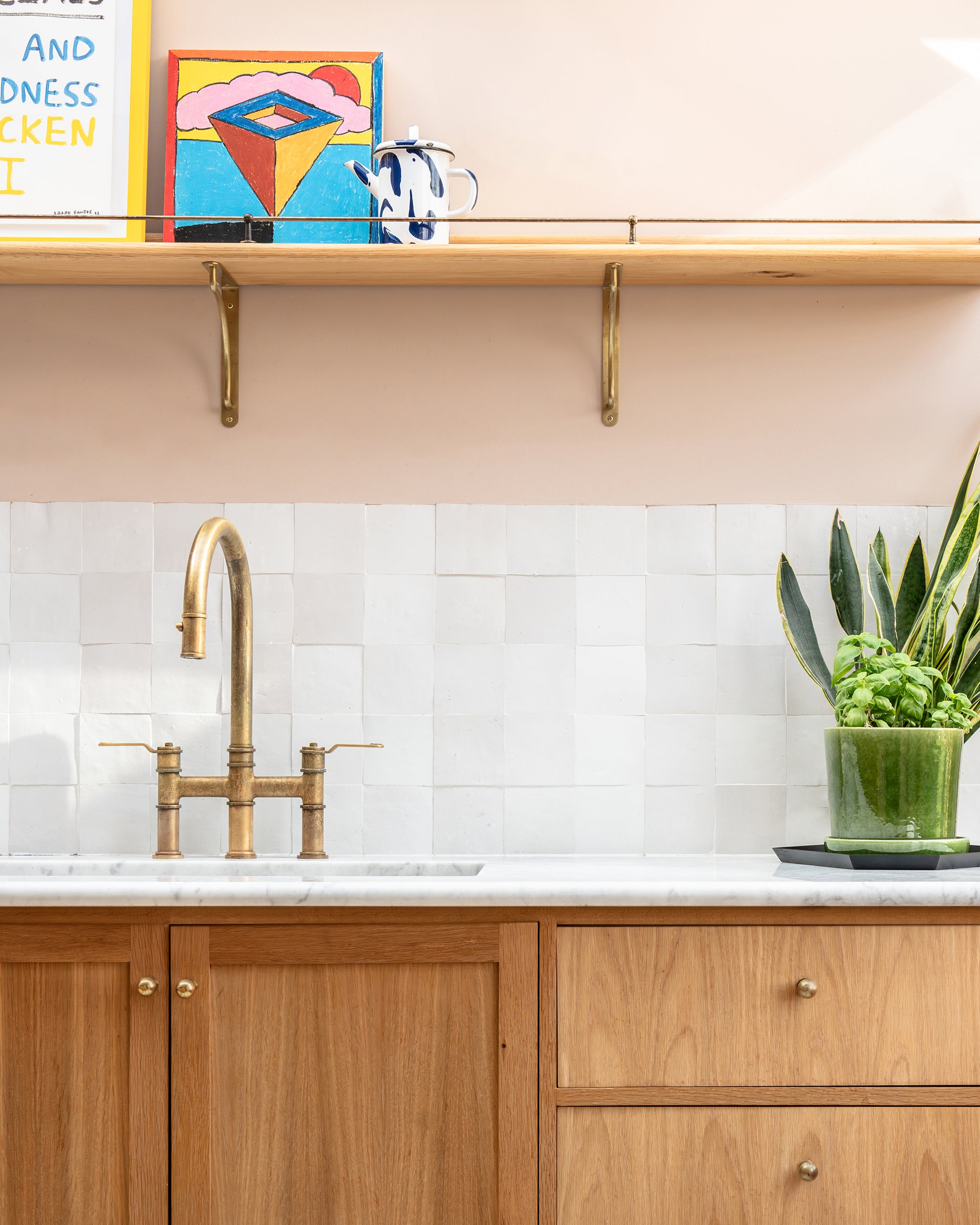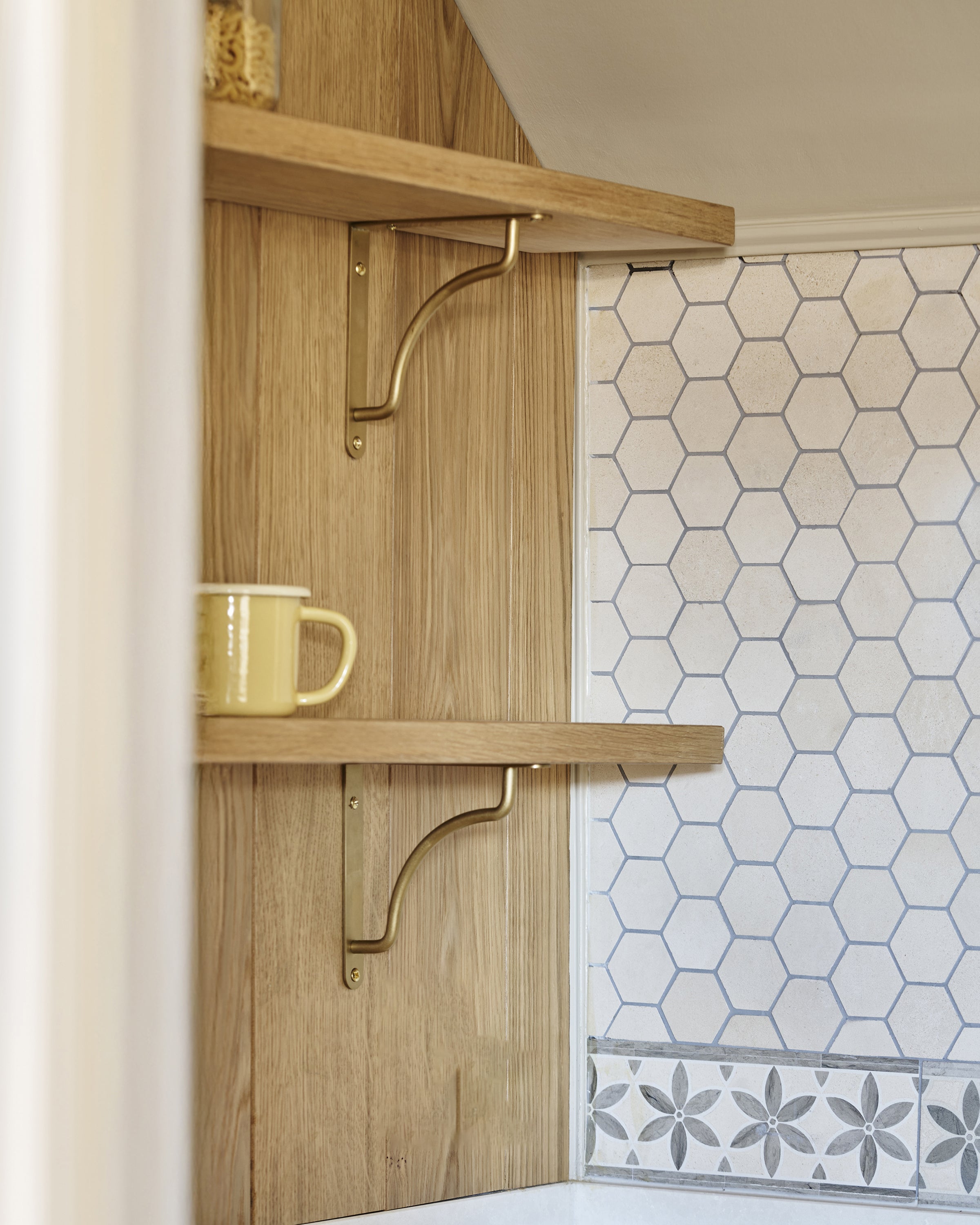 Our gently curved Kilburn shelf bracket is made from sturdy solid brass and will hold up to 85lbs.