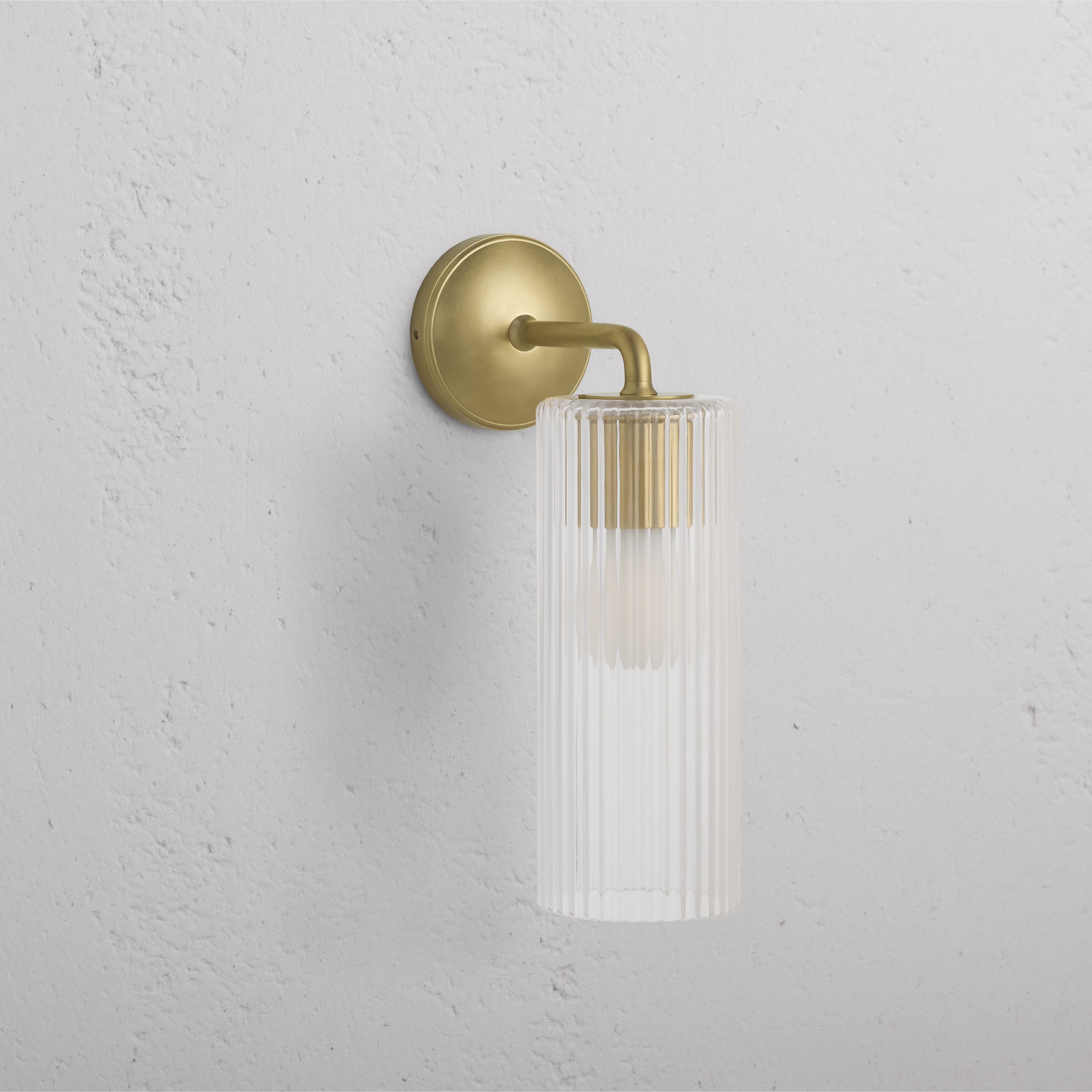 Our Claremont large wall light provides light from one downward-facing fluted glass shade.