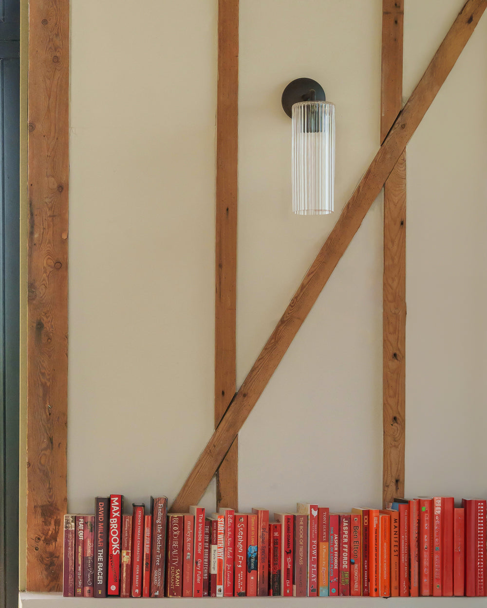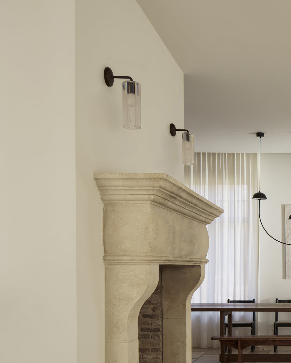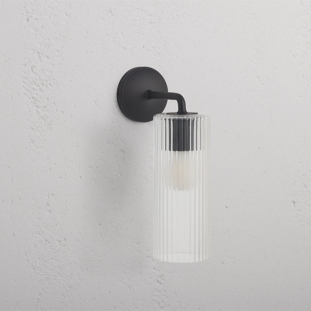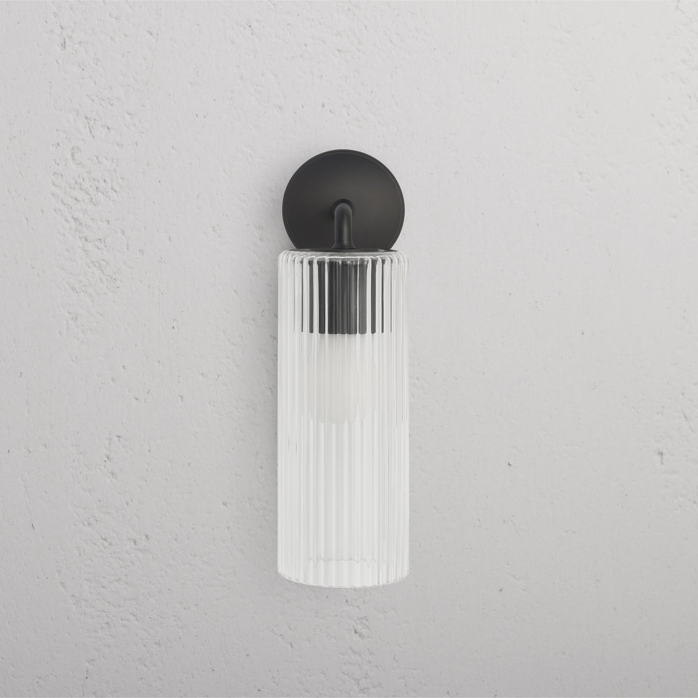 Our Claremont large wall light provides light from one downward-facing fluted glass shade.