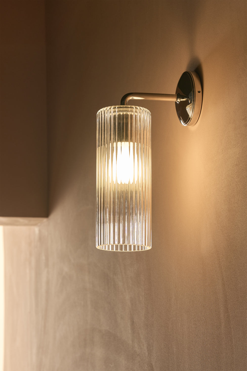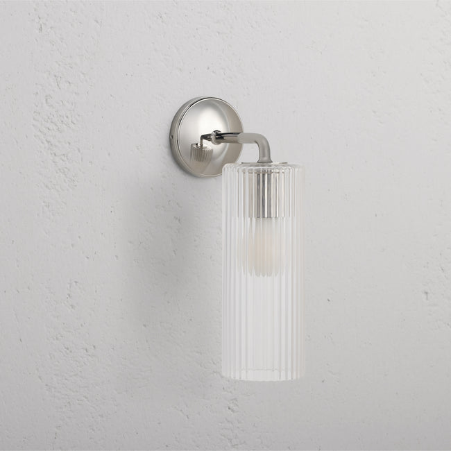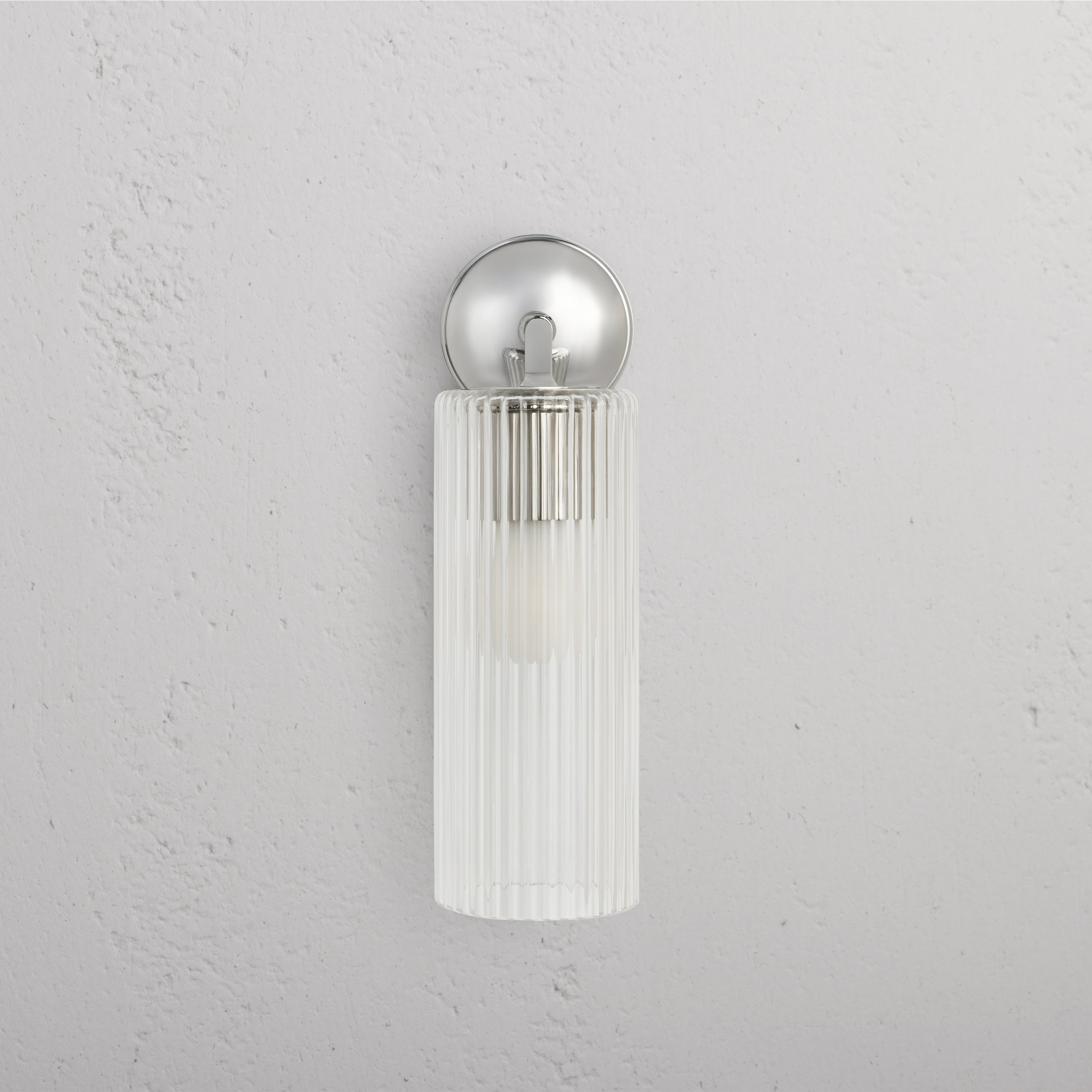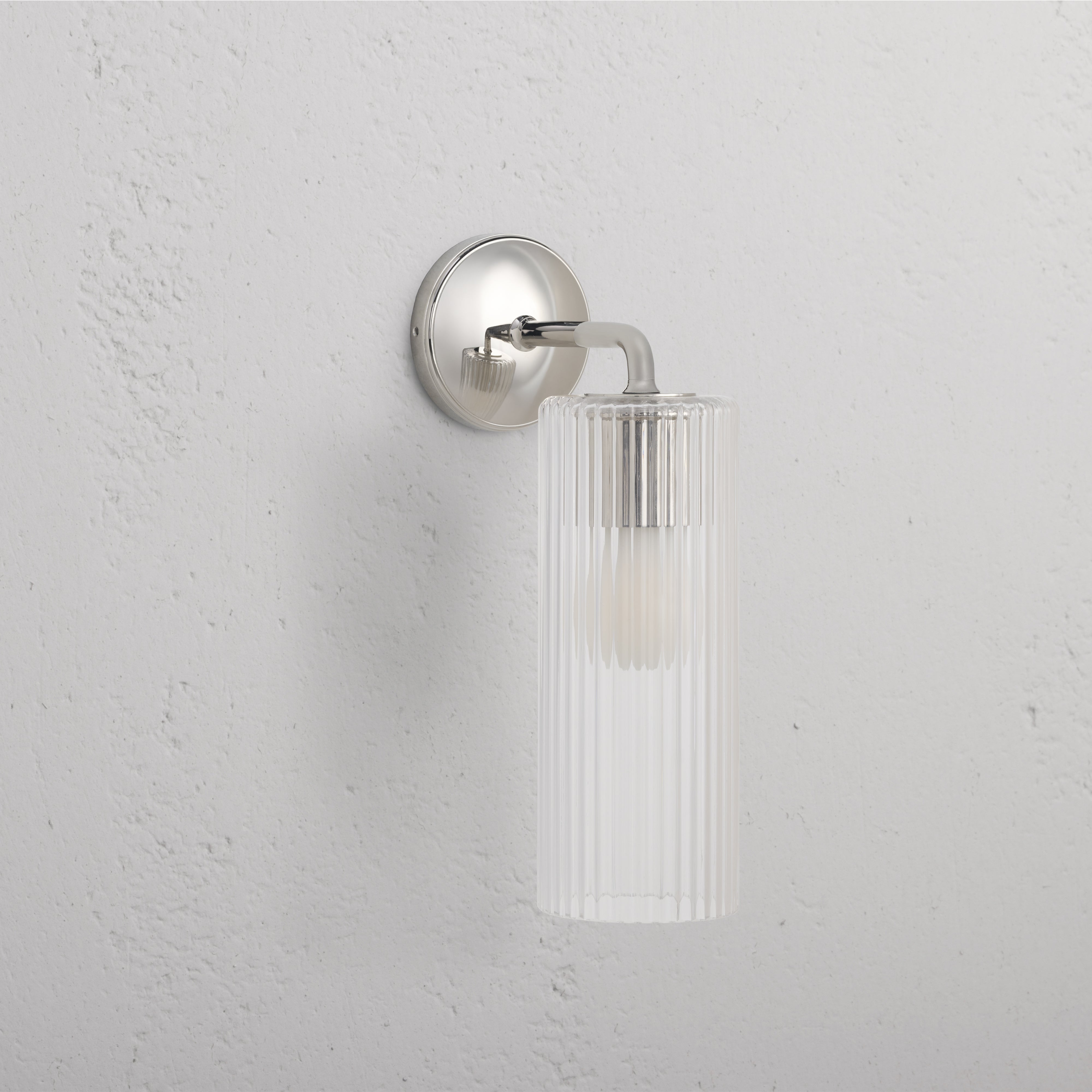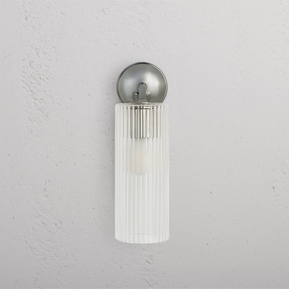 Our Claremont large wall light provides light from one downward-facing fluted glass shade.