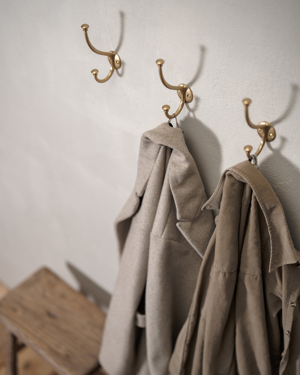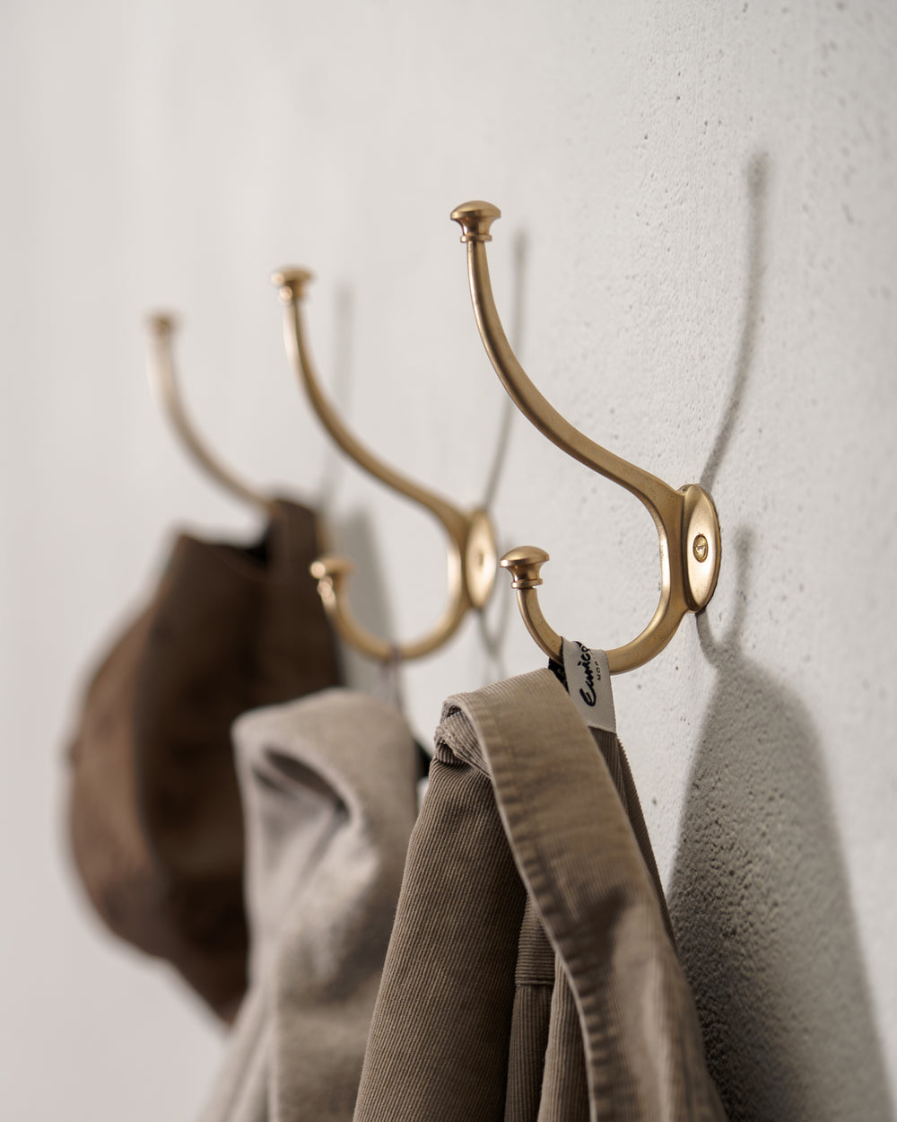 Mews is our classic coat hook with two rounded arms. It’s a generous size, so there’s plenty of room for hanging multiple coats, hats, or towels.