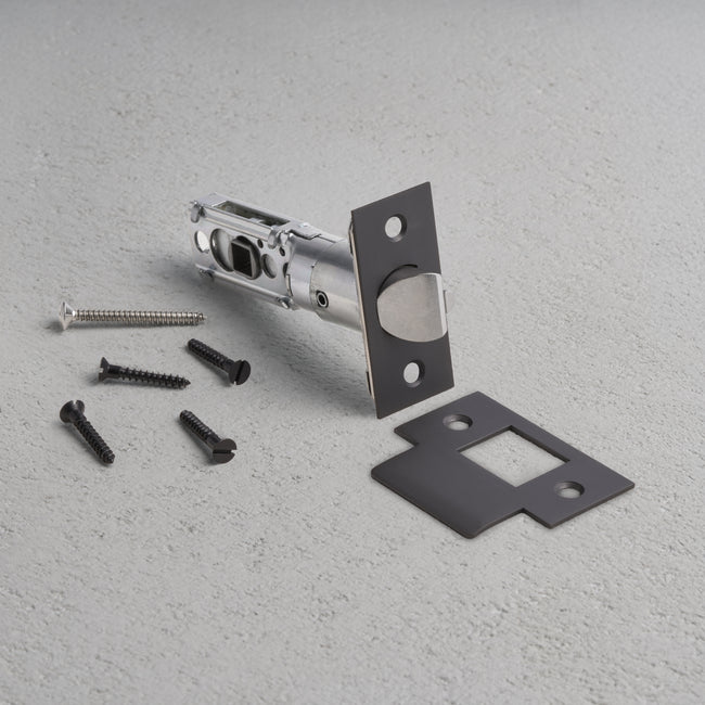 Our sprung handles come with a tubular latch. Our unsprung handles don’t come with one, but you can pair them with our passage tubular latch in bronze, antique brass, and polished nickel.