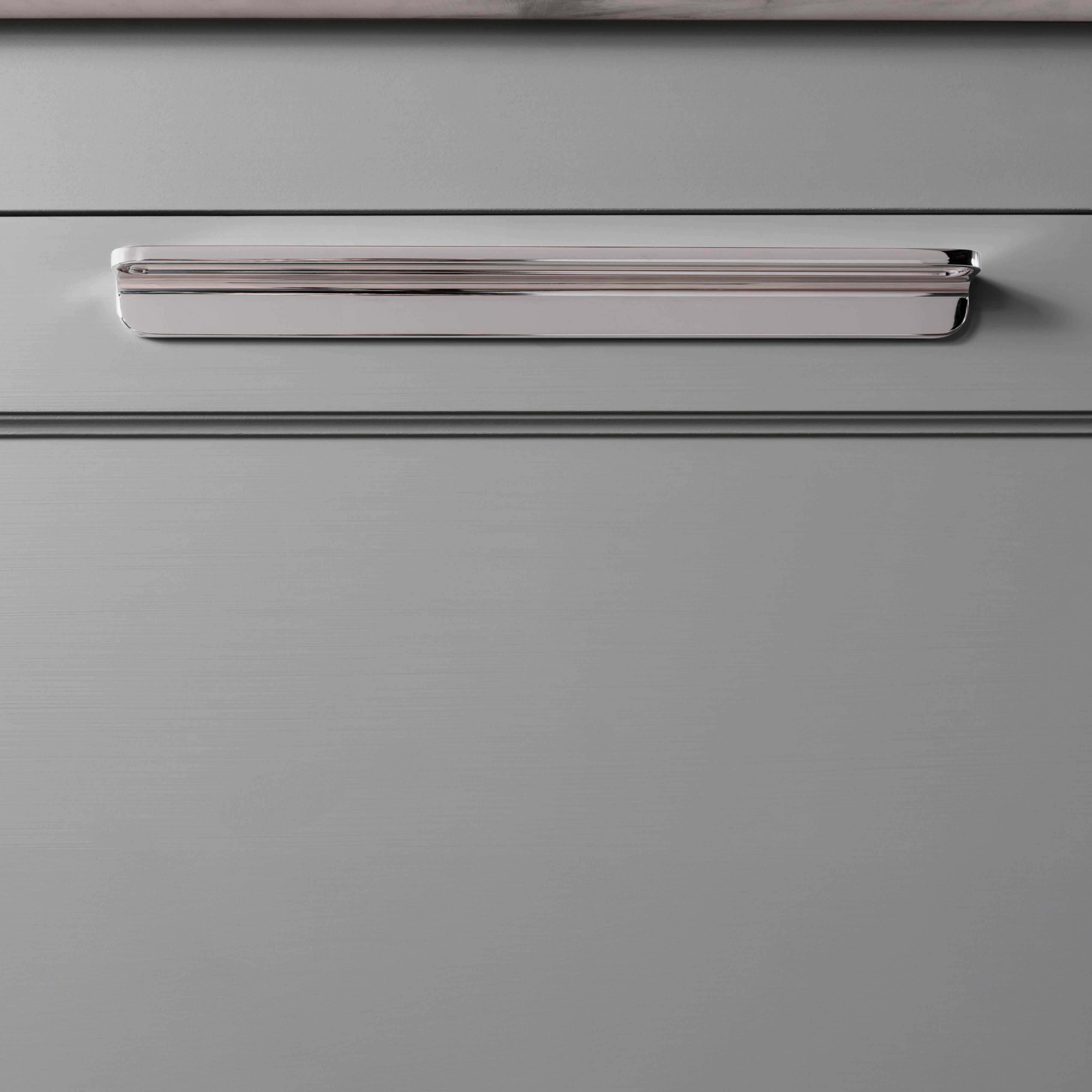 A modern, refined take on an edge pull handle with recessed grip detail for a firm hold.