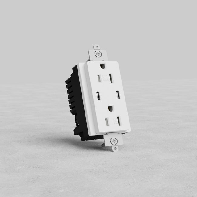 This 15A outlet comes with a dual USB-C port and works with our Kew and Grove outlet plates.
