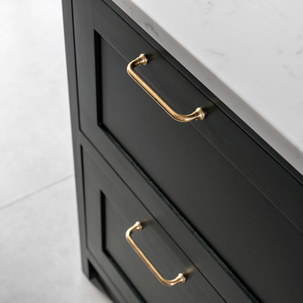 Antique brass is what’s called a 'living' finish because it reacts to the air and moisture around it, causing it to darken (especially in the areas you touch most). We’ve given it a head start by ageing it by hand, so it has that antique look right out the box.