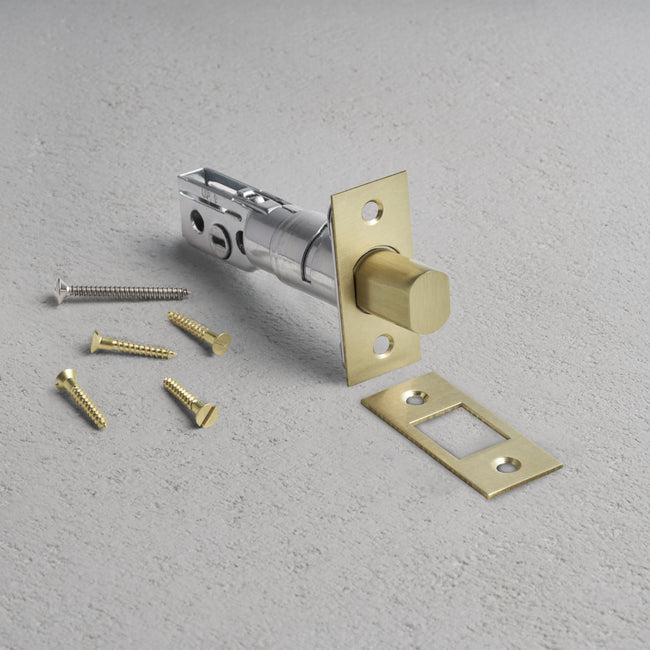 Our sprung handles come with a tubular latch. Our unsprung handles don’t come with one, but you can pair them with our passage tubular latch in bronze, antique brass, and polished nickel.